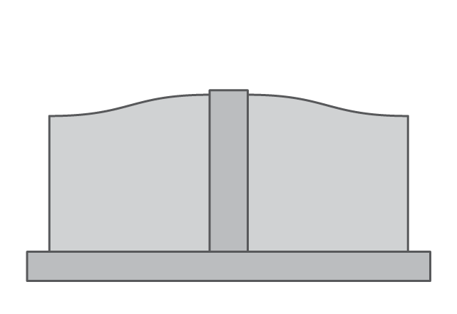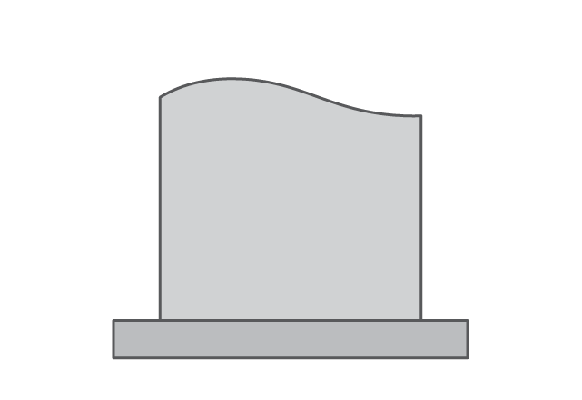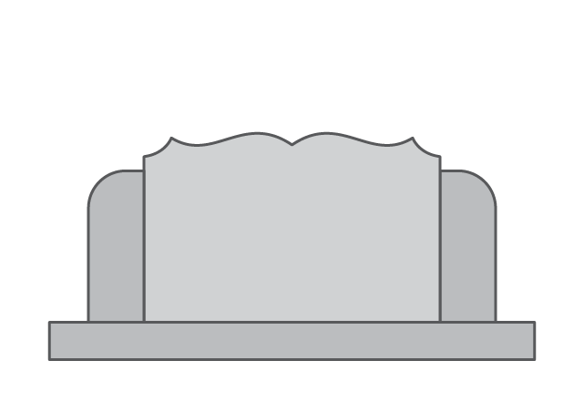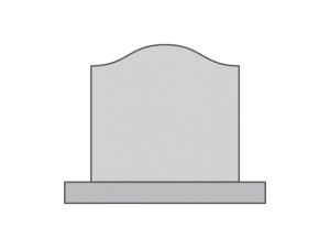 Headstones stand at the head of a burial site or are mounted as a memorial section on the top of a ledger panel. Typical shapes are square and rectangular.